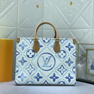 Replica Louis Vuitton LV By The Pool Monogram Tiles Canvas Onthego MM Tote In Lagoon Blue