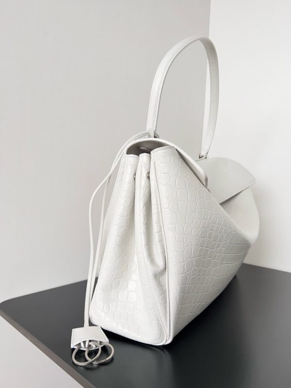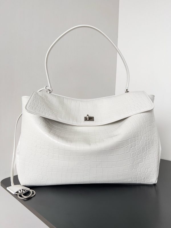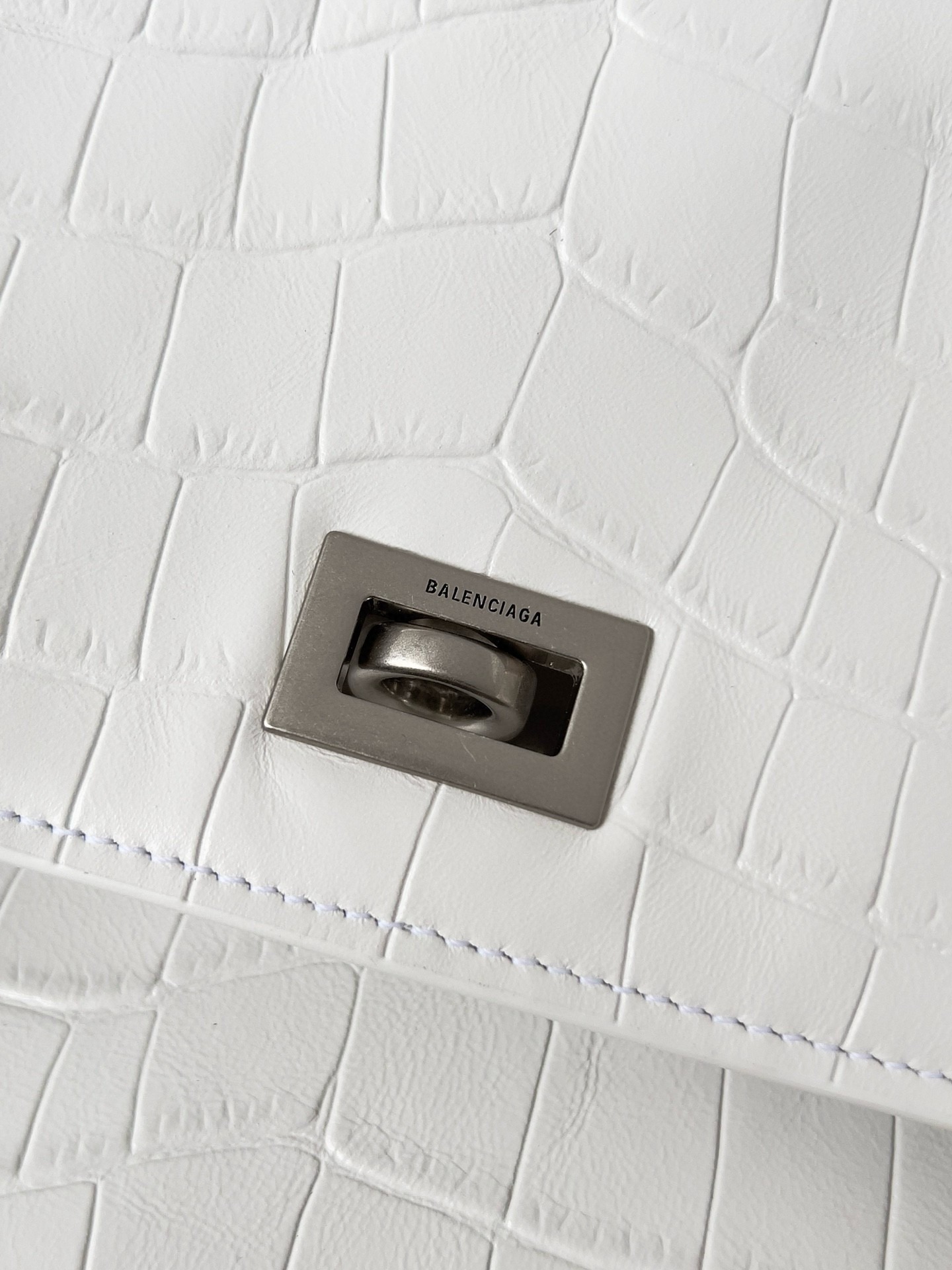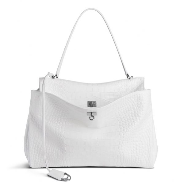 Balenciaga Rodeo Large Bag in White Crocodile Embossed Calfskin