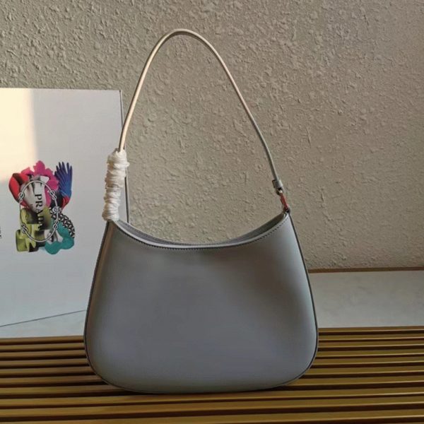 A standout piece from the House’s Multiple Views Spring/Summer 2021 presentation, the Prada Cleo shoulder bag provides an exciting preview of the anticipated collaboration between Mrs. Miuccia Bianchi Prada and her co-creative director, Raf Simons. Crafted from Prada’s iconic brushed leather, renowned for its distinctive texture, the bag showcases a sleek, curved silhouette reminiscent of the brand’s coveted styles from the ’90s and ’00s. It perfectly embodies the show’s theme of merging futurism with classicism, where historical influences inspire innovative designs.