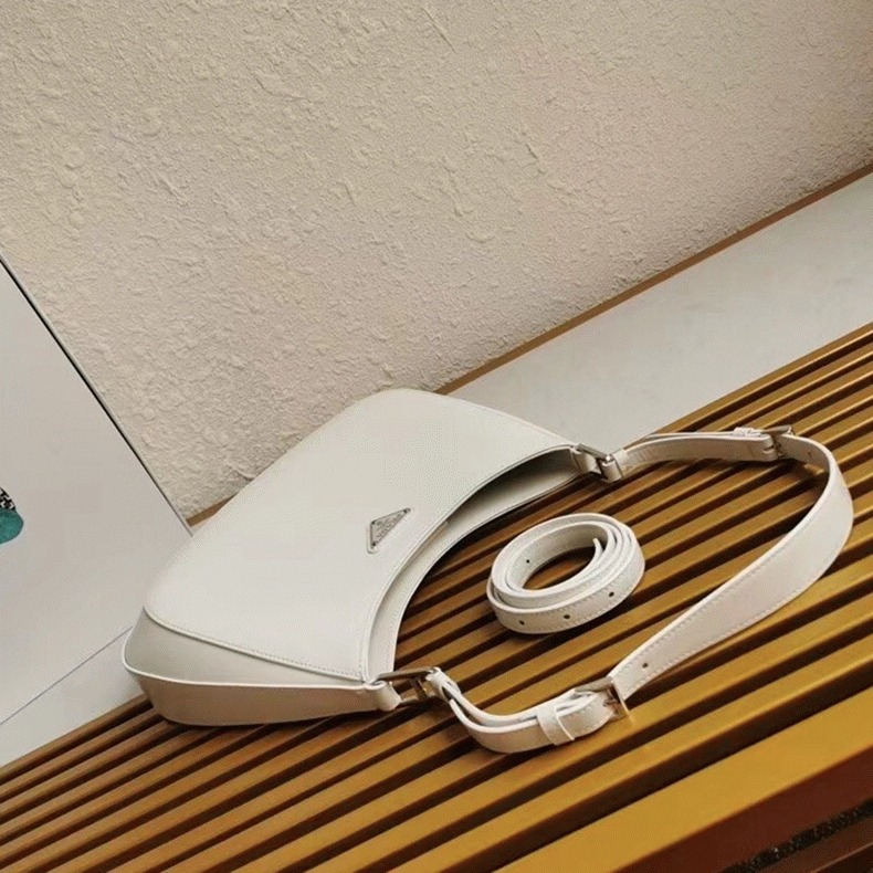 A standout piece from the House’s Multiple Views Spring/Summer 2021 presentation, the Prada Cleo shoulder bag provides an exciting preview of the anticipated collaboration between Mrs. Miuccia Bianchi Prada and her co-creative director, Raf Simons. Crafted from Prada’s iconic brushed leather, renowned for its distinctive texture, the bag showcases a sleek, curved silhouette reminiscent of the brand’s coveted styles from the ’90s and ’00s. It perfectly embodies the show’s theme of merging futurism with classicism, where historical influences inspire innovative designs.