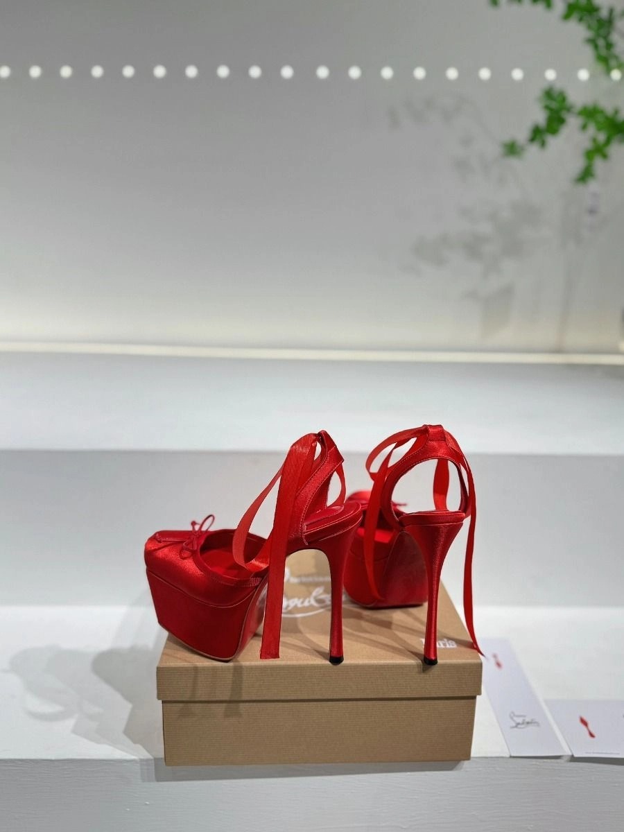 Christian Louboutin Cassia Lace Up Alta Platform 160 mm Strappy Pumps Crepe Satin Red