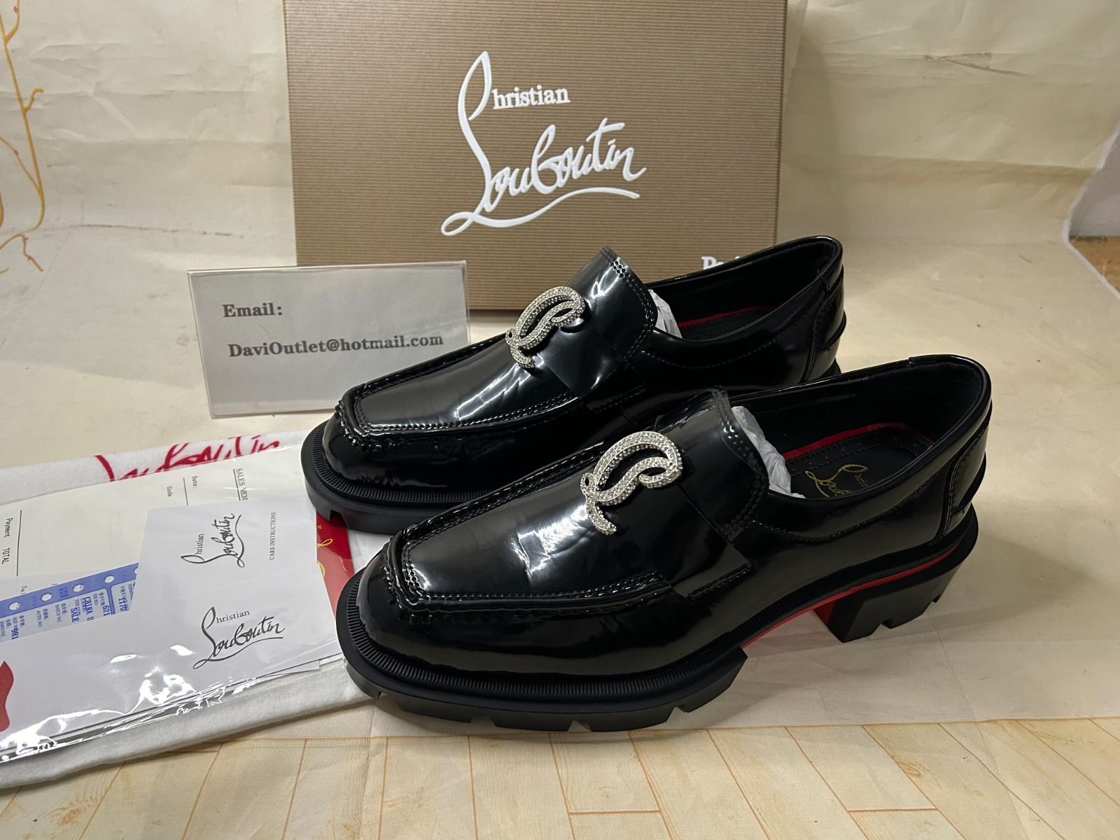 Christian Louboutin Cl Moc Lug Strass Loafers Calf Leather Black