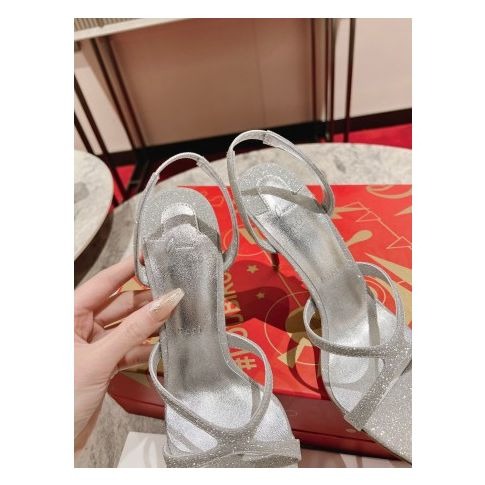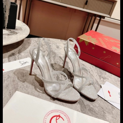 Christian Louboutin Emilie 100MM Sandals Glittered Leather Silver