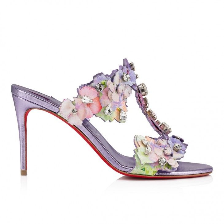 Christian Louboutin Flora 85mm Mules Calf Leather Blooming Print And Iridescent Nappa Leather Multicolor