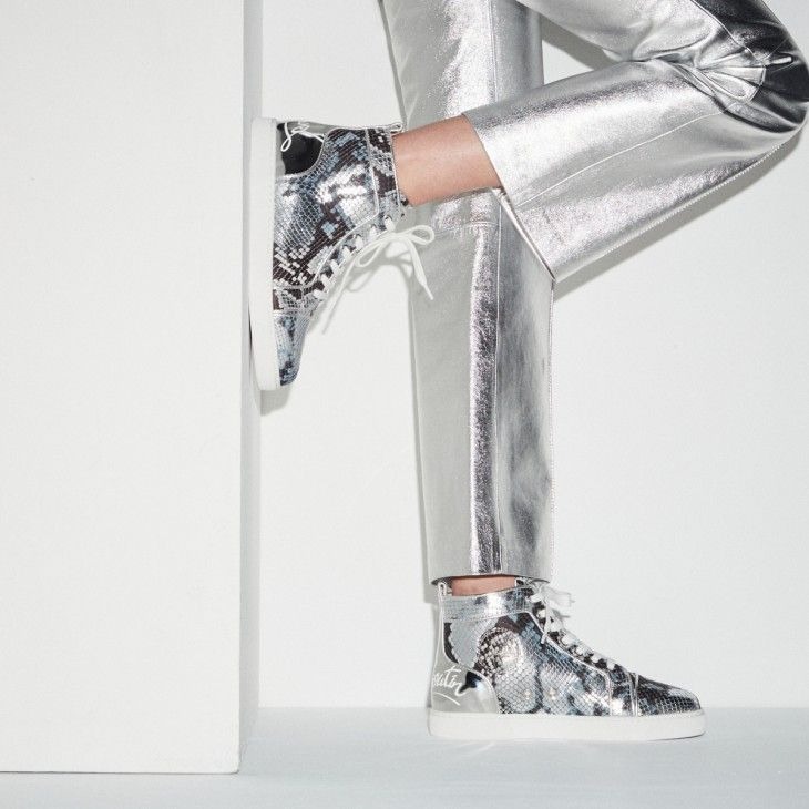 Christian Louboutin Fun Louis Woman High-Top Sneakers Embossed Calf Leather Amazonia Multicolor