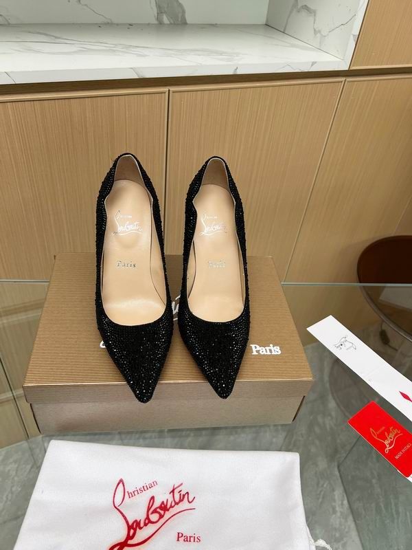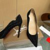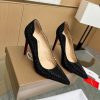 Christian Louboutin Hot Chick 100 Pumps Strass Embellished Leather Black features a pointed toe and is mounted on a slim 100mm heel. It is complete with a curved detail at both sides.