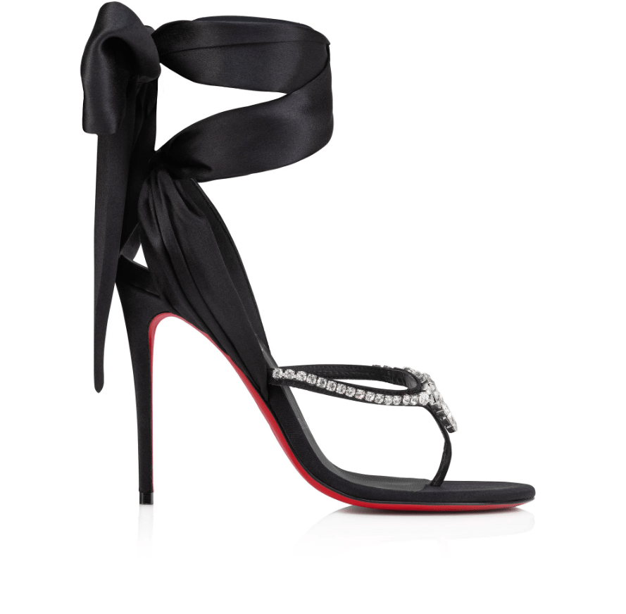 Christian Louboutin Just Queenie Du Desert Sandal 100mm Crepe Satin Black