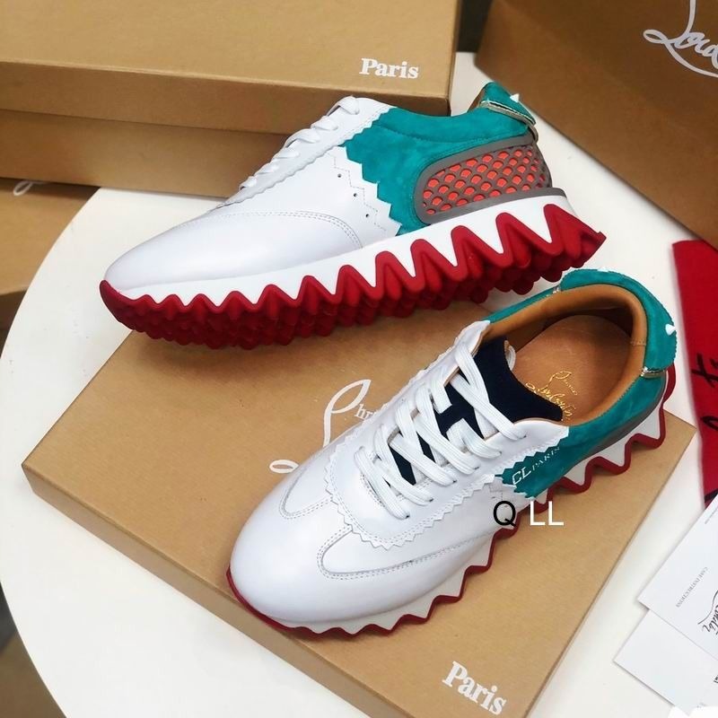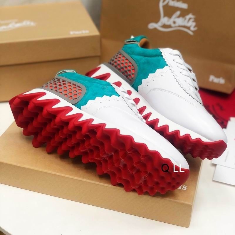 Christian Louboutin Loubishark Women Sneakers Suede and Calf Leather White Blue