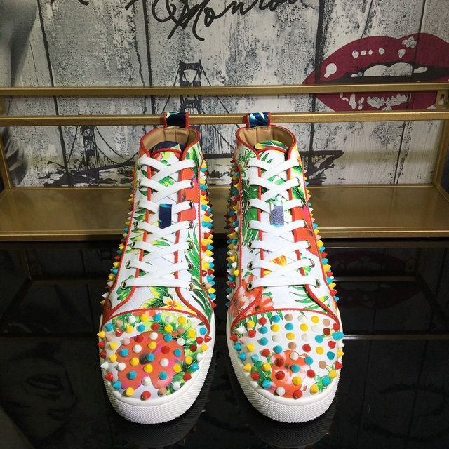 Christian Louboutin Louis Orlato Spikes Sneakers Crackled Calfskin Hawaii Print Multicolor