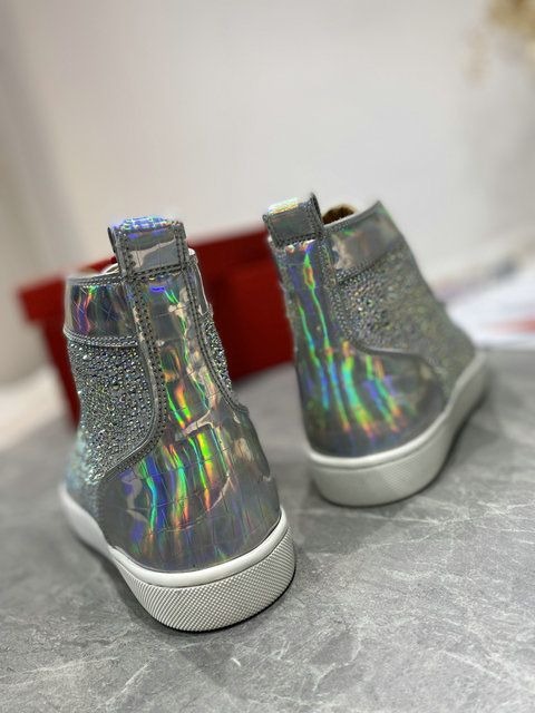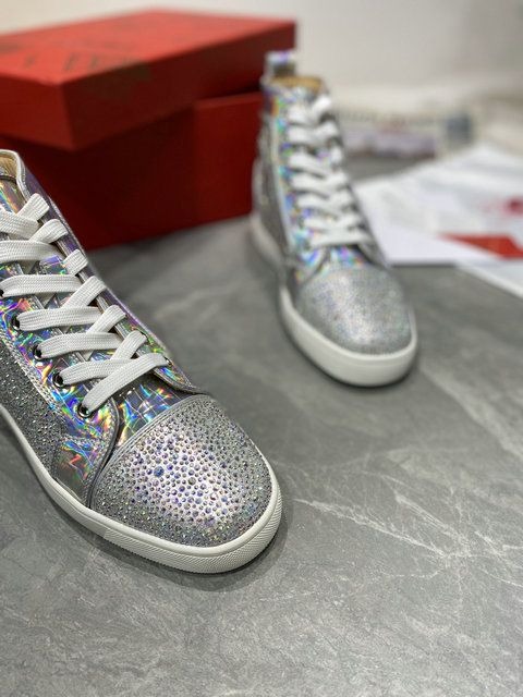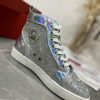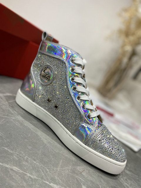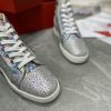 Christian Louboutin Louis Strass High-top Women Sneakers Iridescent Leather and Strass Silver