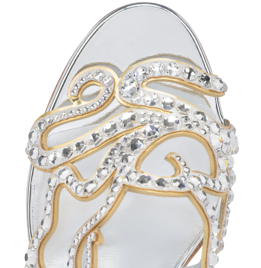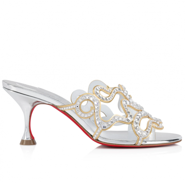Christian Louboutin Octomule Strass Sandals 70mm Metallic Suede And Specchio Leather Silver