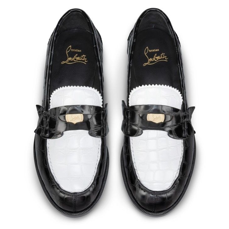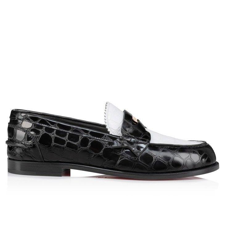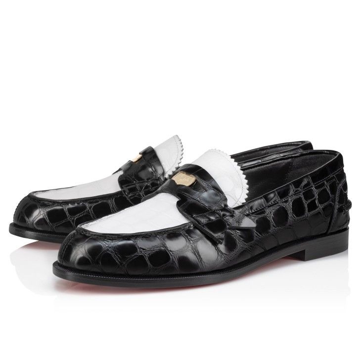 Christian Louboutin Penny Loafers Alligator Embossed Calf Leather White