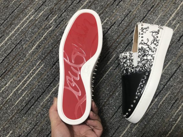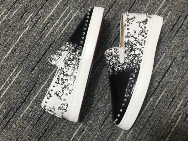 Christian Louboutin Pik Boat Spikes Slip-on Women Sneakers Patent Leather Black White