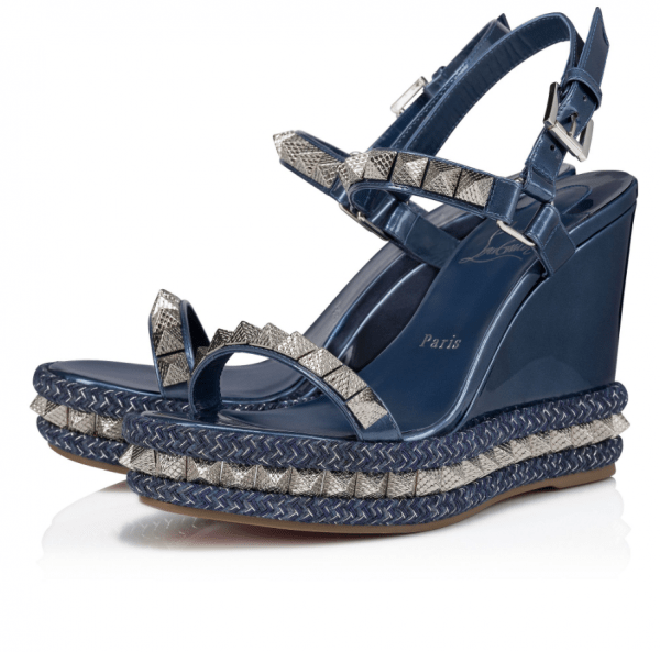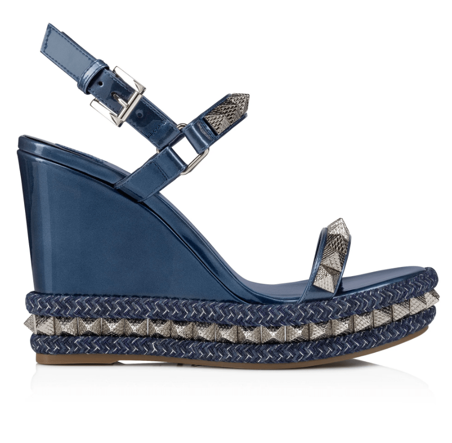 Christian Louboutin Pyraclou 110 mm Espadrilles Patent Calf Leather Blue