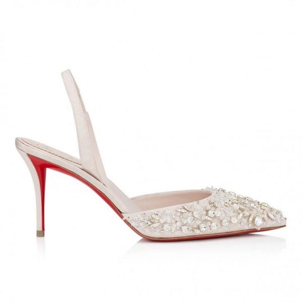 Christian Louboutin Queenissima Sling 80mm Sling Back Pumps Moire Fabric Leche
