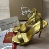 Christian Louboutin Sandal Loubi Queen 120 mm Bouton D Or/lin Bouton D Or Leather