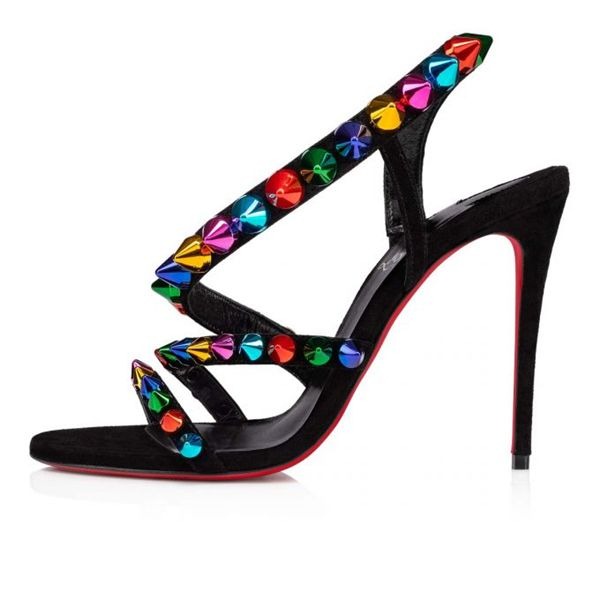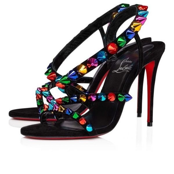 Christian Louboutin Sandal Spikita Strap 100 mm Black/multi/lin Bk Suede Leather