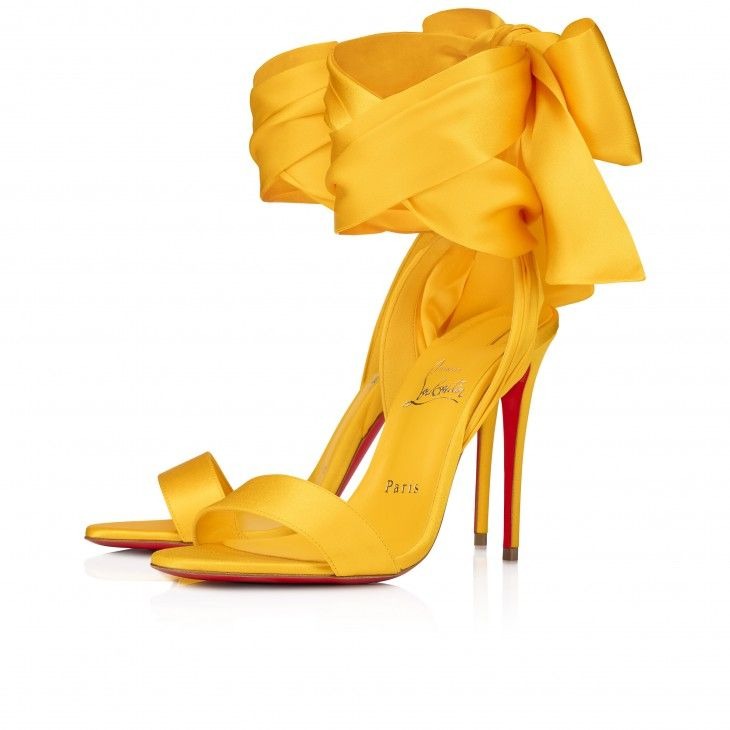 Christian Louboutin Sandale Du DéSert 100 Mm Strappy Sandals Crepe Satin Pollen