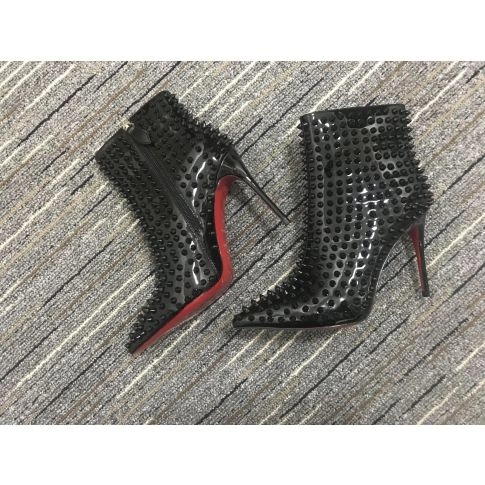 Christian Louboutin Snakilta Spiked Ankle Boots 100mm Patent Leather Black