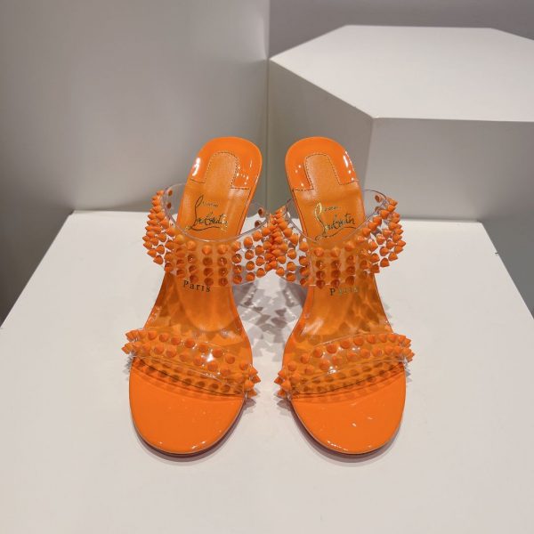 Christian Louboutin Spike Only 105mm PVC and Patent Leather Sandals Orange
