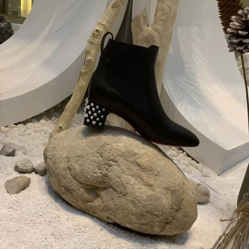 Christian Louboutin Spiked Study Stretch Ankle Boots 55mm Calf Leather Black