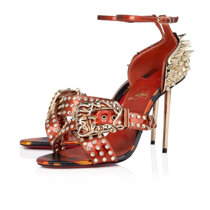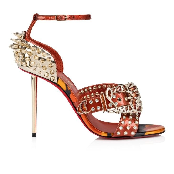 Christian Louboutin Wosandal Pic 100 Mm Sandals Patent Leather And Spikes On Fire Rodeo