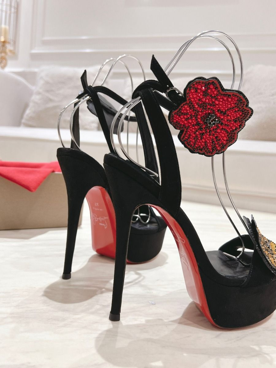 Christian Louboutin X Shun Sudo Button Flower Strass Loubi Queen Alta Platform Sandals 150mm
