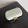 Bottega Veneta began experimenting with weaving techniques in the late 1960s. This clutch has been crafted in smooth leather with a sophisticated version of the label’s signature weave, intrecciato. The clutch has plenty of space for essentials, and is fastened with a gold tone clasp that looks like a knot.