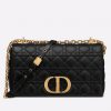 The Dior Caro bag beautifully blends contemporary style with enduring elegance. Crafted from supple calfskin, it showcases the iconic Cannage stitching. The bag’s flap is adorned with an antique gold-finish metal ‘CD’ twist clasp, reminiscent of the seal on a Christian Dior perfume bottle. The detachable chain shoulder strap with ‘CD’ signature links offers versatile carrying options: by hand, over the shoulder, or crossbody. This strap can also be swapped for one of Dior’s wide embroidered straps, making the bag suitable for both daytime and evening wear.