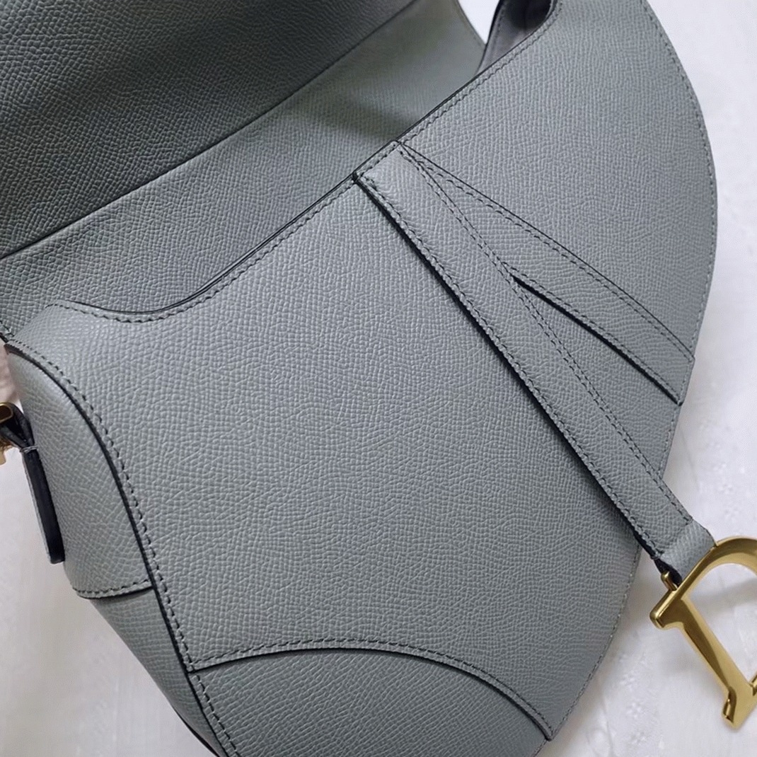 Fake Dior Saddle Bag In Gray Grained Calfskin