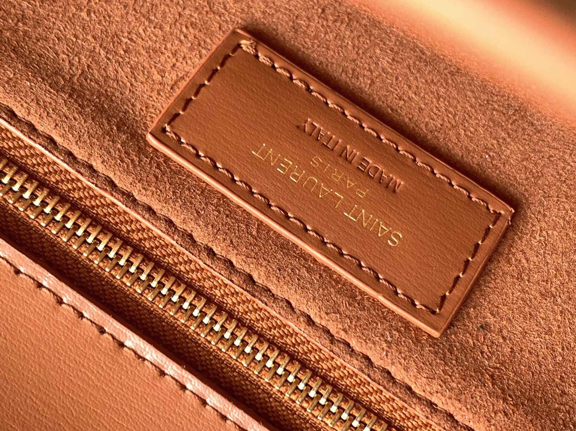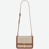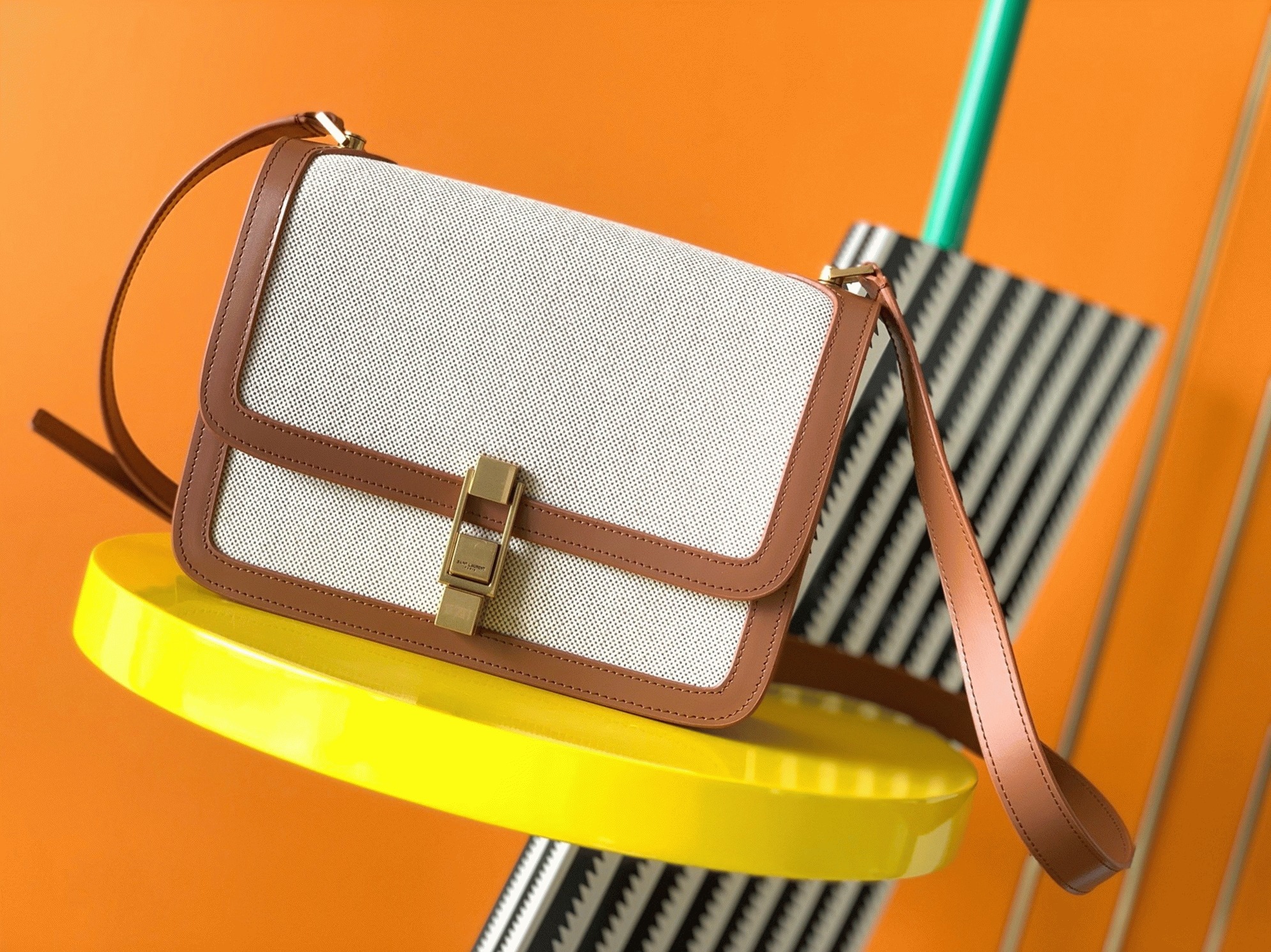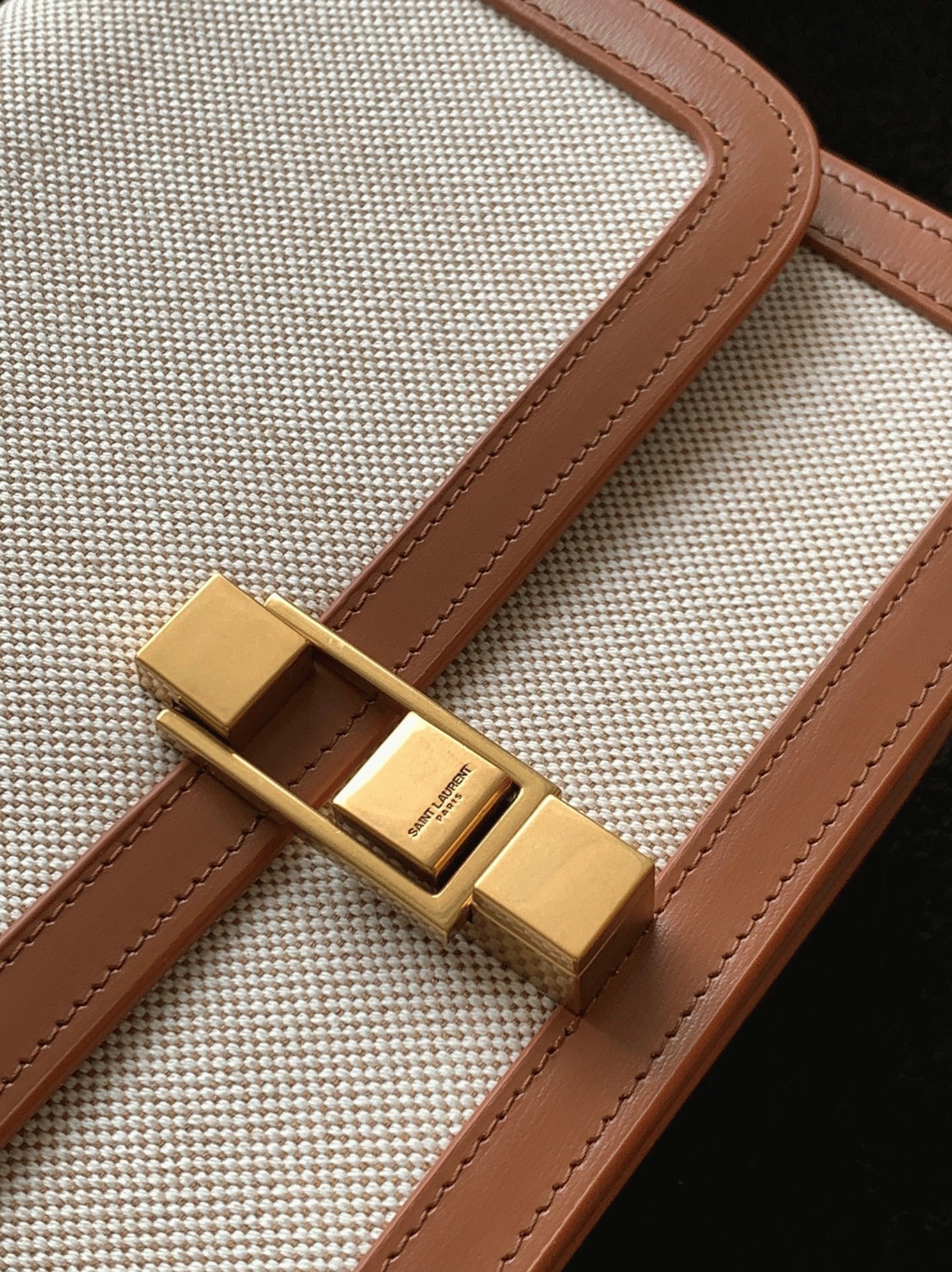 Le Carre shoulder bags by Saint Laurent have a minimal, sleek design that is perfect for both formal and everyday occasions. It is made of smooth leather and has a boxy shape with a gold-tone clasp. The interior is slim and has enough room for your phone, a cardholder, and other essentials.