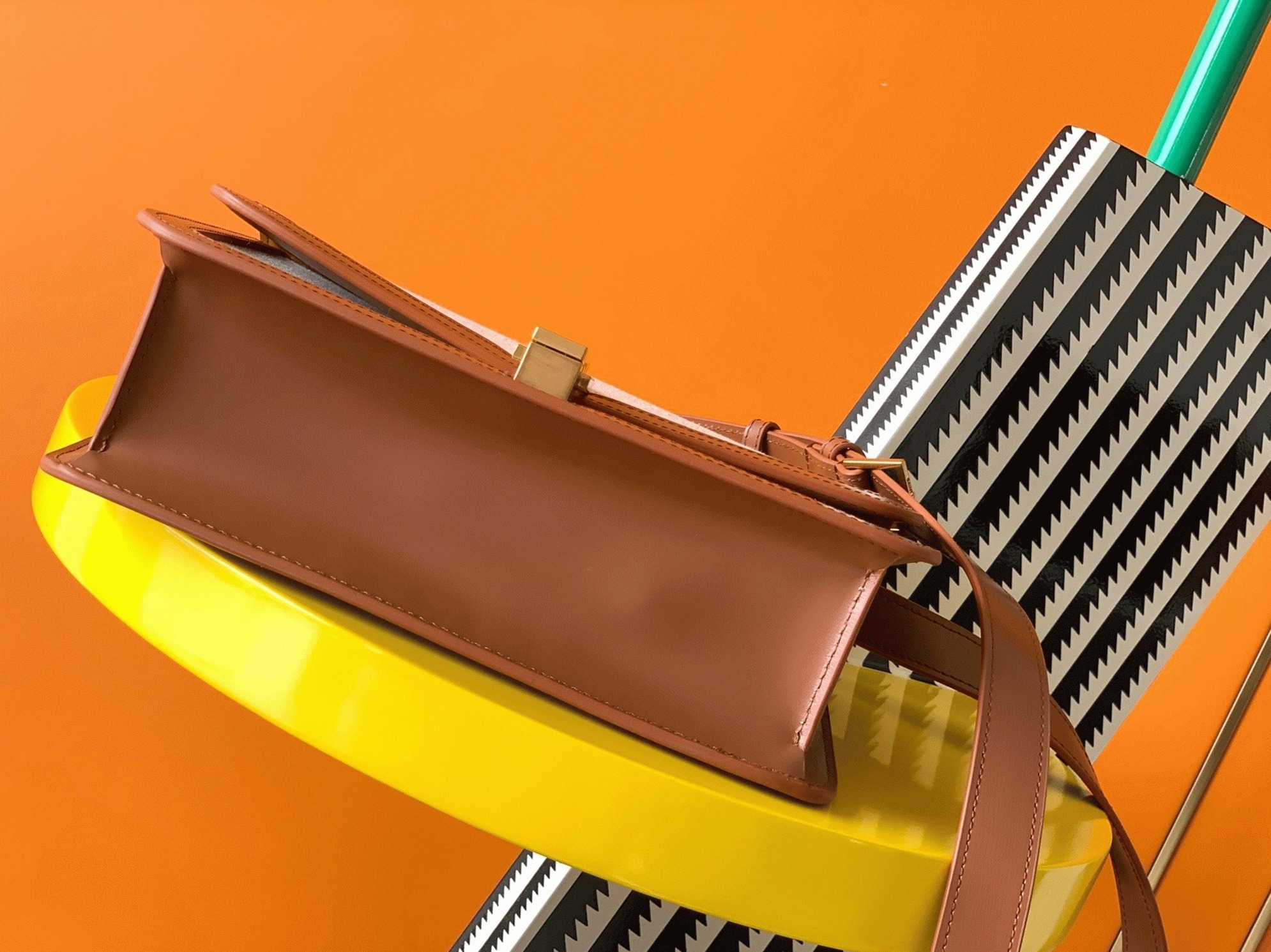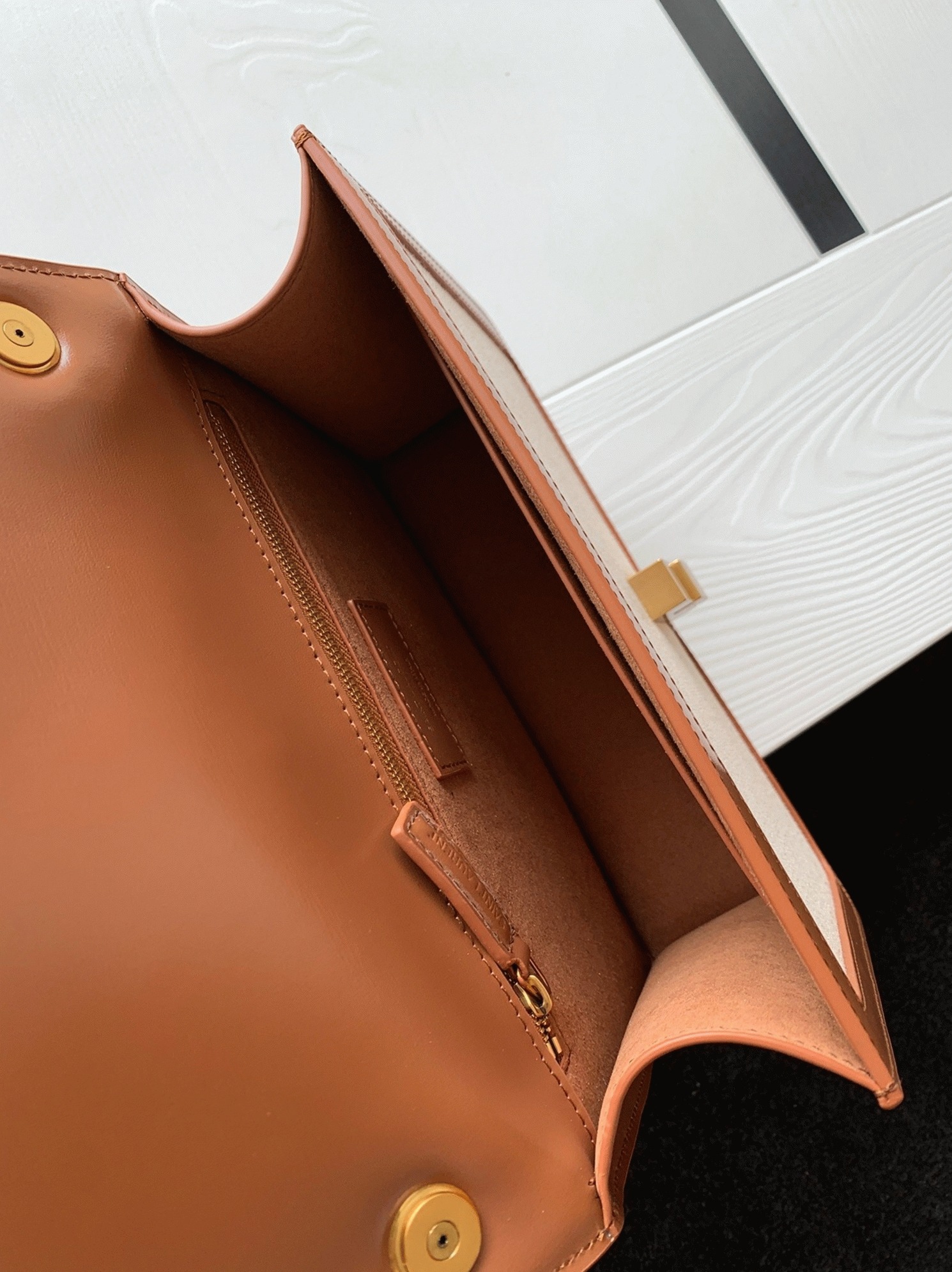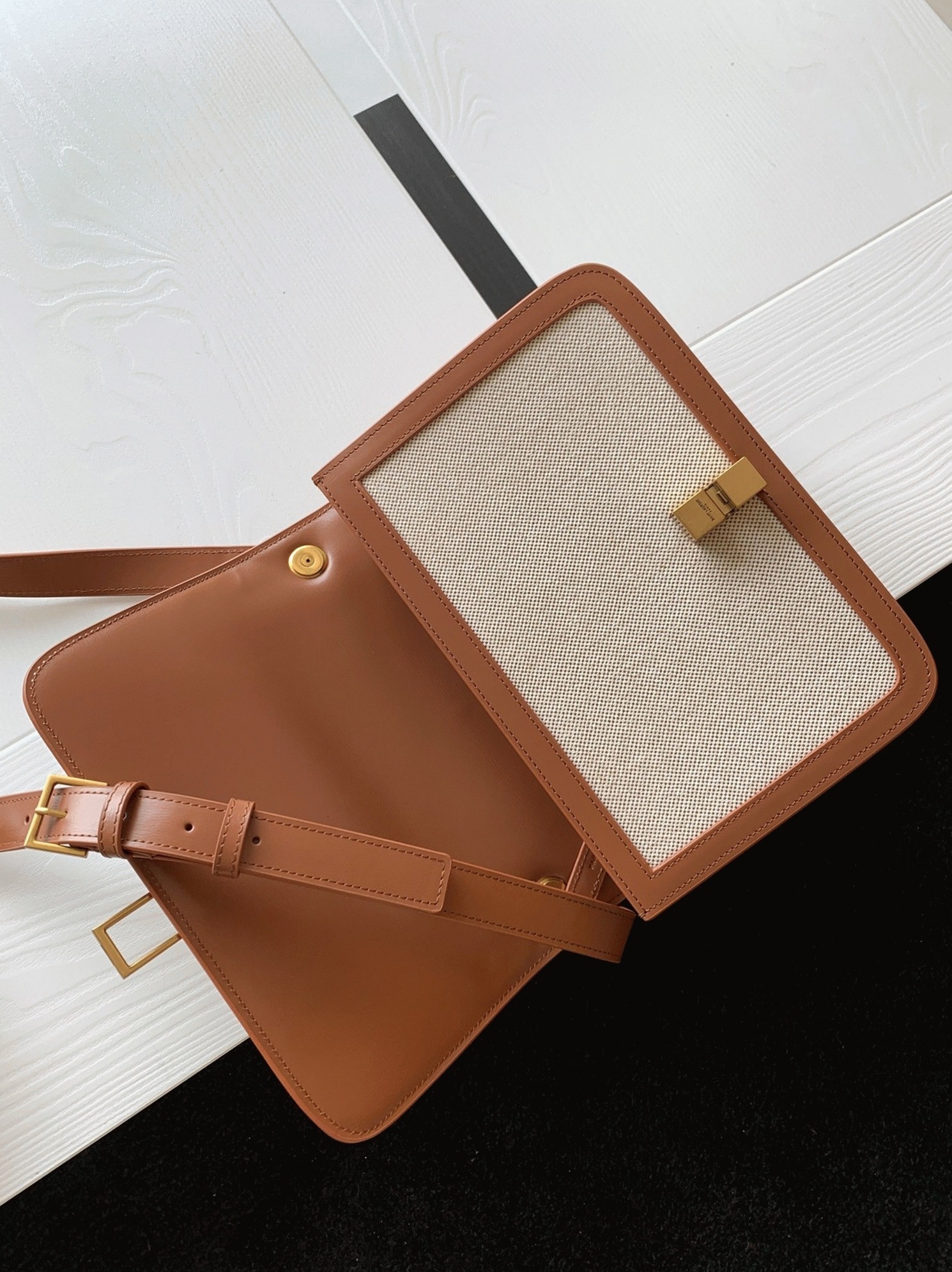 Le Carre shoulder bags by Saint Laurent have a minimal, sleek design that is perfect for both formal and everyday occasions. It is made of smooth leather and has a boxy shape with a gold-tone clasp. The interior is slim and has enough room for your phone, a cardholder, and other essentials.