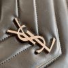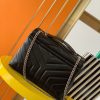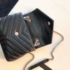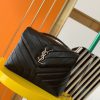 The iconic YSL monogram, created in 1962 by Adolphe Jean Marie Mouron, is still recognized today as a symbol of luxury and quality. This quilted bag is made of smooth leather with signature chevron stitches. It is compact but has an organized interior that includes two compartments, one zipped pocket, and three card slots.
