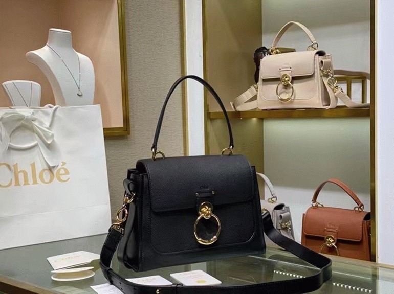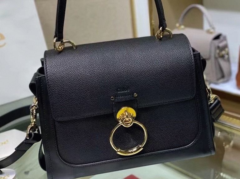 Knockoff Chloe Small Tess Day Bag In Black Grained Leather
