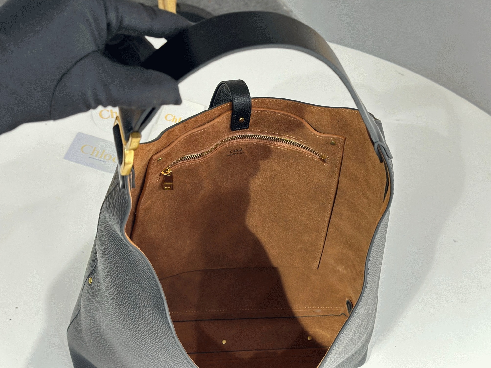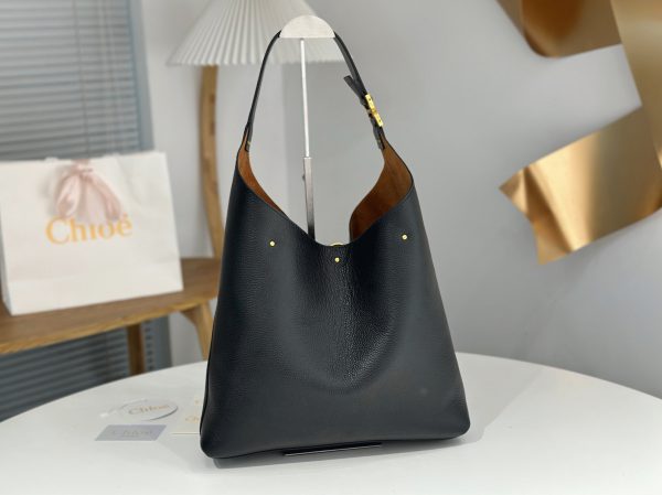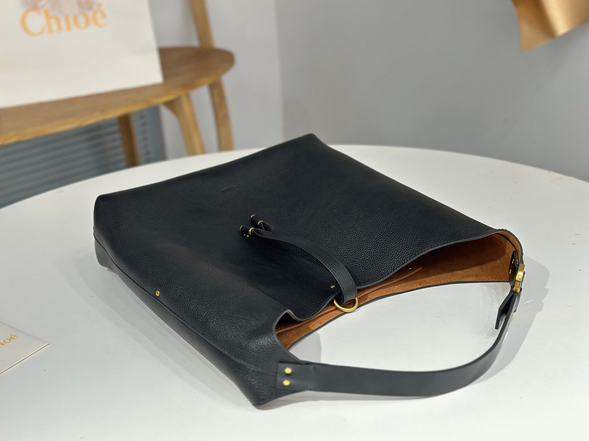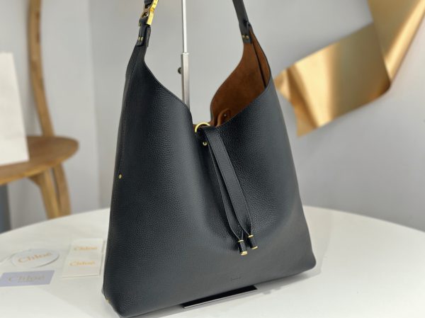 Knockoff Previous Previous Chloe Marcie Hobo Bag in Black Grained Leather