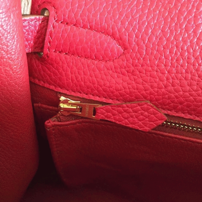 There is an embossed Hermes Paris logo under the flap on the front of the bag.