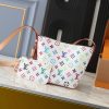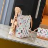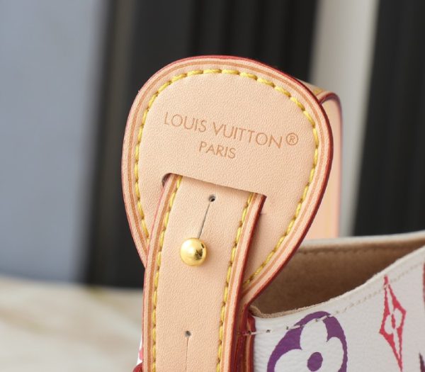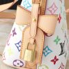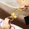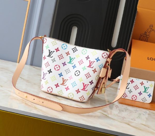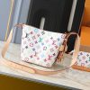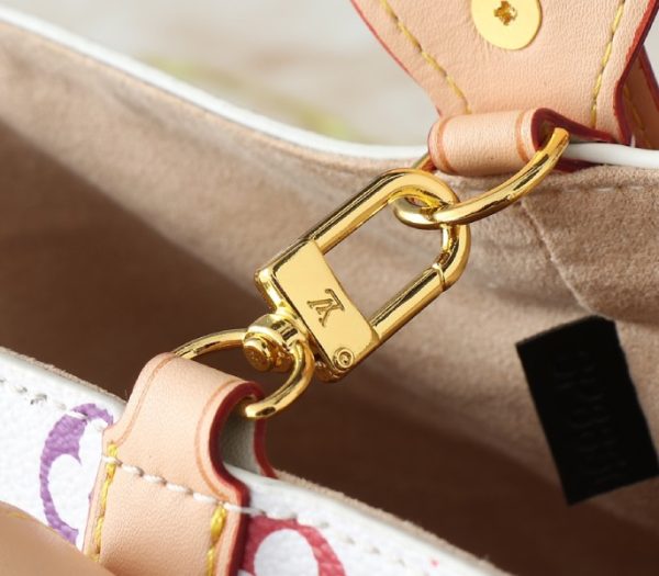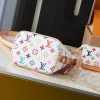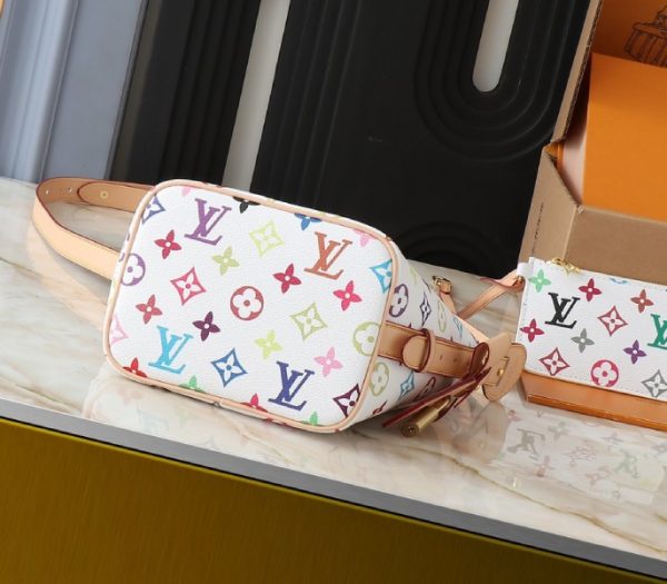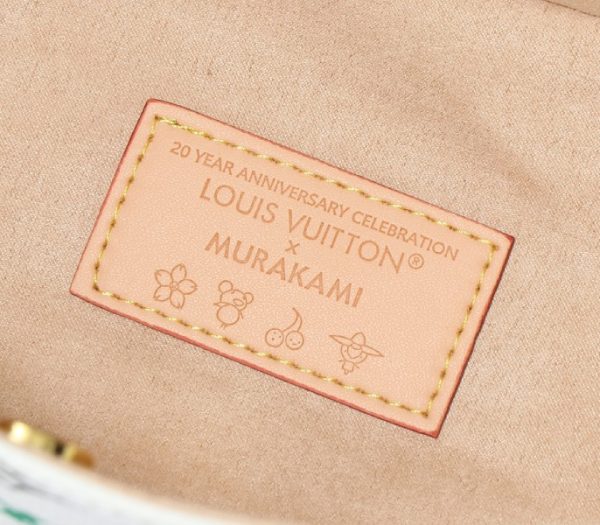 Spirited signatures from the re-edition of the Louis Vuitton x Murakami collection elevate this elegant All In BB handbag with a playful twist. Crafted from coated canvas, the iconic Monogram motif is uplifted in the Japanese artist’s go-to rainbow palette, while the name tag is reimagined with a bow detail and a padlock attachment. The natural cowhide leather handle can be adjusted for hand or shoulder carry, while an additional leather strap offers a cross-body styling option.