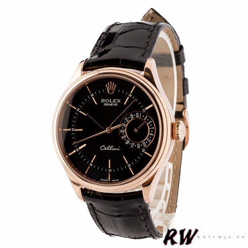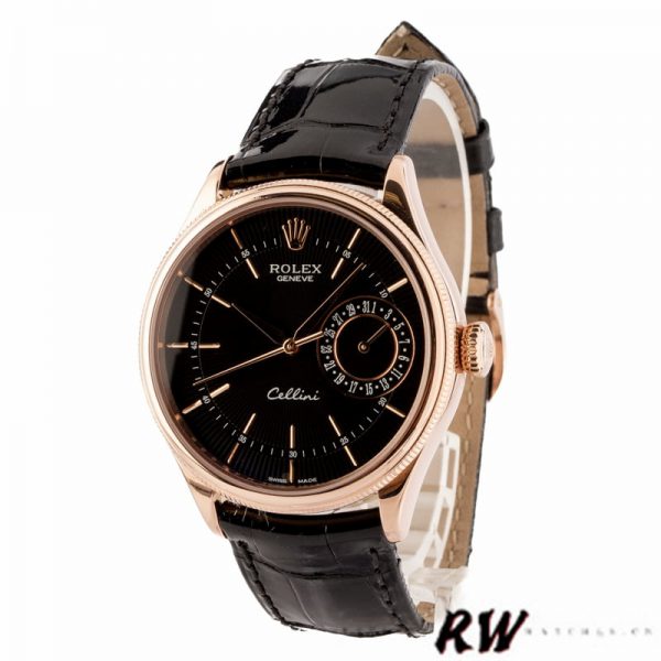 Rolex Cellini Date 50515 Rose Gold Black Index Dial 39mm Mens Replica Watch