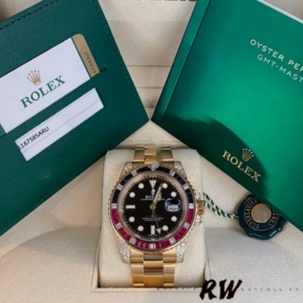 Rolex GMT-Master II 116758 Oyster Bracelet Black Dial Diamonds 40mm Mens Replica Watch