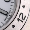 Bezel: Brushed stainless steel cutwork bezel with black Arabic numeral 24-hour markers